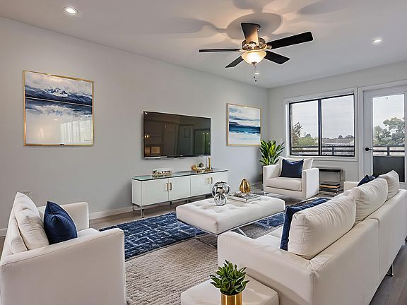 A modern 995-square-foot, one-bedroom apartment with a bonus den or office is defined by its thoughtful spatial design and open-concept layout, where functionality is paramount. Every element is intentionally chosen to maximize the compact space, creating a living environment that feels airy, uncluttered, and sophisticated. A separate, flexible den/office space that can be closed off for privacy with a pocket door or left open to expand the living area. The placement of the den near the entrance allows for a private home office setup. This modern one-bedroom boasts an open flow connecting the living, dining, and terrace areas. Strategic lighting and natural light from the terrace to define different zones and create depth in the open-concept layout. This design fosters a seamless transition between spaces, enhances functionality, and promotes a sense of spaciousness, making the home ideal for entertaining and daily life.