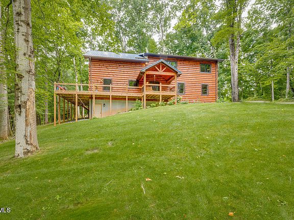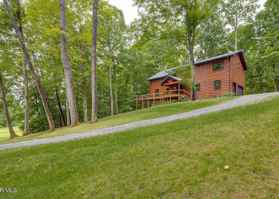Nestled in the lush mountains of East Tennessee...Custom log home sitting on 7 plus acres surrounded by mature trees offering utmost privacy and pasture for animals or gardening. This log home is definitely a rare find offering O_P_E_N floorplan with tall ceilings and picture windows offering seasonal mountain views, tranquil setting, 3 bedrooms, 2.5 baths, office/playroom/4th bedroom, LR with wood burning fireplace, loft area overlooking the LR, plumbed basement with all materials to finish it out into an in-law suite or movie theatre and area for pool table, wrap-around porch offering mountain views, large primary with walk-in closet and tile shower, island in the kitchen along with walk-in pantry, 3 car garage with 60 amp charger, and full RV hook up. The privacy this home offers is amazing and you have just enough land to homestead but that's not all you have a wet weather creek that borders the property and you have your own private cave entry on the property as well. Sellers use Starlink or Century Link for internet and as WIFI connection for phone service. This property is tucked away yet only 25 mins to Johnson City and only 15 mins to Unicoi offering grocery stores restaurants and Wal-Mart. This is a must-see!!! Buyer to verify all info.