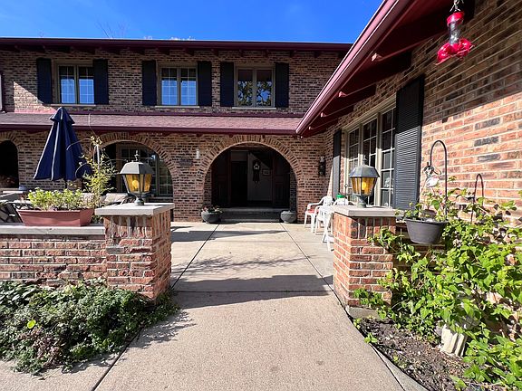 Classic designs never go out of fashion. This five-bedroom, three full-bath, all-brick Spanish Provincial on three sprawling acres is ready for your personal touch. An arched brick entry and hand-carved wood doors welcome you to this unique home. A newer concrete courtyard is a great place for family gatherings and provides a stunning view of the property. The grand two-story foyer boasts hardwood flooring with patterned inlay, curved solid oak staircase and imported antique crystal chandelier. There's a spacious dining room and formal living room with vaulted ceiling and exposed wood beams. The large family room has a woodburning fireplace, sliding patio door and ample windows. Large kitchen has a bay-window eating area with lovely views of the lot and wildlife. Second floor bedrooms are all hardwood. There's a full 1800 sf basement with kitchen and bath roughed in, wood-burning fireplace, another bedroom and massive gathering space. The basement has its own private entrance and a new door. Other notable features: Newer dual-zone HVAC Handicap lift in garage New water softener. New GENERAC generator