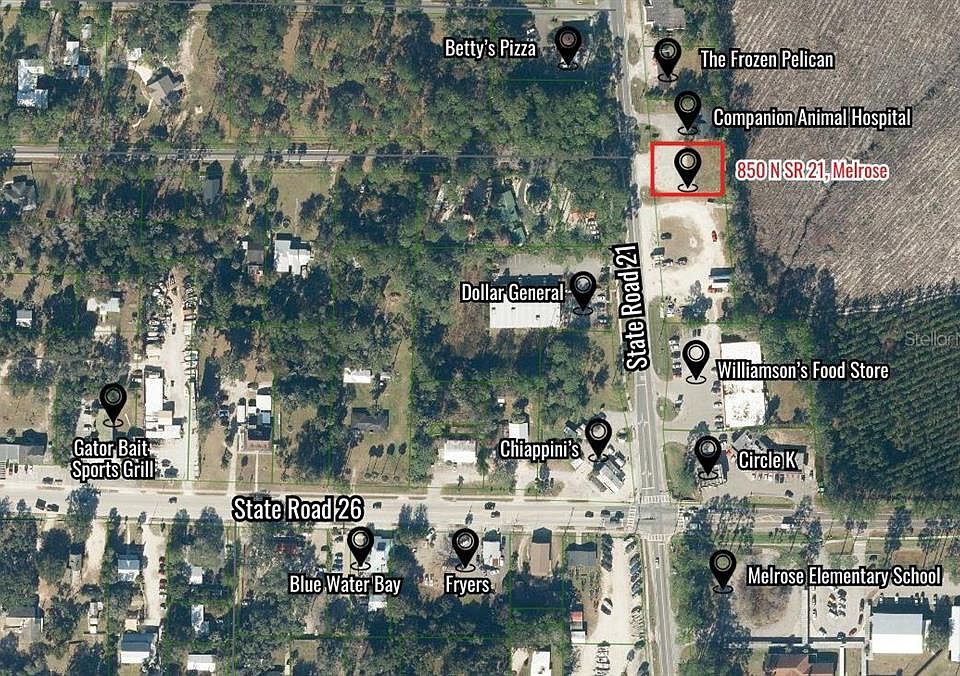 Melrose commercial opportunity- Located one block from the junction of SR 21 & SR 26 in the heart of Melrose is the perfect site to start your new retail or service business. With 100 feet of SR 21 frontage, this 0.31 acre site offers great exposure with a traffic count of over 9,500 cares daily. Zoned C-2 commercial the site offers city water, and is flat and ready to build. The vibrant community is known for its many community events and art shows that can swell foot traffic dramatically on the weekends. So, if you have been dreaming of starting your own business don't let this unique opportunity pass you by!