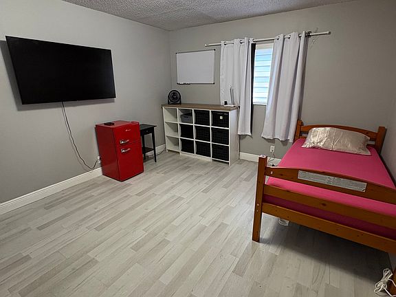 Comes furnished with a twin bed (or bring your own bed fits a queen easily)