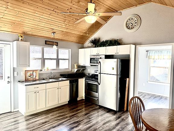 Cozy Two-bedroom Cabin in the Valley with lots of potential!!! Split bedroom, open floor-plan with vaulted ceilings in kitchen, dining, and living room with pine tongue and groove ceiling. Bath has walk-in shower. Located on a quaint country lot with a a few other cabins, this home backs up to a year-round creek, has nice sized back deck, and storage shed. Front porch is covered with steps on one side and ramp on the other side for easy access. Perfect for a weekend getaway in the woods, or full time living. More photos coming this week!!