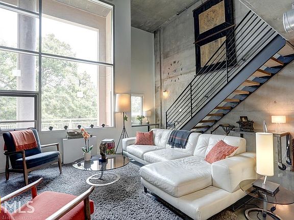 Fall in love with this large loft in sought-after Copenhill. This boutique loft-building is located less than 200 steps to the Beltline Eastside Trail, Freedom Park & all things "intown!" Soaring ceilings and windows, open floor plan, stylish finishes. Kitchen overlooks the 2-story great room and separate dining area. Enjoy a walk out balcony with South treetop views. The over-sized master has been improved to allow for a separate office or guest room with an updated master bath & multiple closets. Second full bath & laundry/storage room on main. Google Fiber ready. Strong HOA, mostly owner occupied building-rental cap is not currently met; Two garage parking spaces.