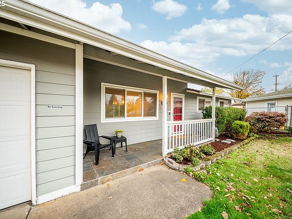 Welcome home to this charming one-level! This beloved ranch-style layout has been thoughtfully updated to feel fresh, bright, and effortless for everyday living. Tucked away on an 9,900SF Lot (.23Acre.) This oversized lot in a quiet cul-de-sac. This home offers 3 bedrooms, 1.5 baths, and a flowing floorplan for comfortable living space. The light and bright floorplan feels open and inviting from the moment you step inside. The updated kitchen features spacious granite countertops, stainless-steel appliances, and is complete with a dishwasher and disposal. The living room offers hardwood laminate floors & a cozy wood-burning fireplace that is perfect for crisp fall evenings & cool summer nights. Easy Indoor/Outdoor living! Sliding glass doors open from the dining area, to a large covered patio for year-round entertaining. The fully fenced backyard offers space to play, relax by the firepit, garden and enjoy the fruit trees! (Pear, Cherry & Plum tree) The possibilities feel endless in this generous outdoor space. Fresh interior paint! Large newer windows throughout that bring in plenty of natural light. Fiber cement siding. Air Condition. House water lines repiped in 2024. Forced Air Gas Furnace, located in attic. 468 SqFt Oversized Attached Garage. Fresh paint and modern touches make this home a blank canvas ready for you! Excellent parks! The newly expanded Parklane Park (opened 2025) and the beautifully updated Verdell Burdine Rutherford Park (renovated 2020) provide fantastic nearby recreation. Alder Grade School just a few blocks away! Come and enjoy this wonderful community. This lovely home & tremendous lot is ready for you to make it your own! [Home Energy Score = 6. HES Report at https://rpt.greenbuildingregistry.com/hes/OR10242730]
