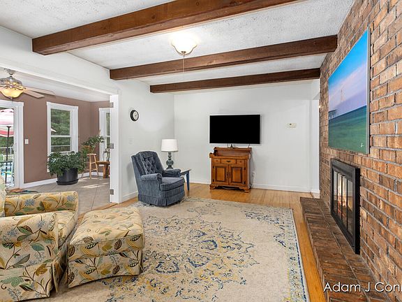 Welcome to this oversized ranch nestled on a quiet, tree-lined street just 15 minutes from downtown Grand Rapids. Set on a serene 2acre lot, this home offers the perfect blend of space, comfort, and convenience. Main floor features 4 generously sized bedrooms and 2 full baths. The inviting living room and dining area are anchored by a cozy double sided fireplace, perfect for relaxing or entertaining. Original hardwood floors run throughout all bedrooms and the living room, adding warmth and character.