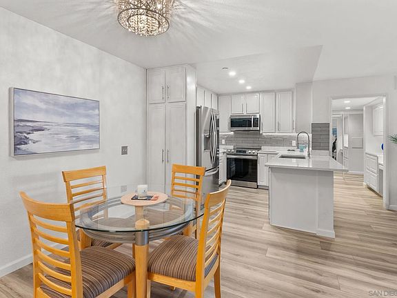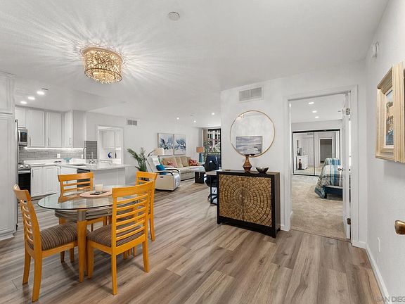 Welcome to your top floor urban sanctuary at Marina Park—an elegantly remodeled condo located in one of Downtown San Diego’s most desirable communities. Nestled in the quiet yet vibrant Marina District, this spacious 2-bedroom, 2-bath residence offers upscale living with all the modern comforts and walkable convenience of city life. Step inside to discover a light-filled open floor plan, thoughtfully designed with high-end finishes throughout. The remodeled kitchen boasts quartz countertops, sleek cabinetry, stainless steel appliances, and a breakfast bar perfect for casual dining or entertaining. The spacious living and dining areas flow seamlessly to a private balcony—your personal perch to unwind and enjoy city views. Retreat to a generously sized primary suite complete with a large walk-in closet and a spa-inspired en-suite bathroom featuring a modern vanity and beautiful tile work. Enjoy in-unit laundry and central A/C complete the package. Marina Park is a full-service community offering resort-style amenities including 24-hour security, two swimming pools, spa, fitness center, lush courtyards, and guest parking. Enjoy the best of Downtown—just steps from Seaport Village, the waterfront, Gaslamp Quarter, Little Italy, and PETCO Park. This turnkey home blends sophistication and location, making it ideal for full-time residents, second-home seekers, or savvy investors. Don’t miss your opportunity to live in one of Downtown’s most established and well-kept communities.
