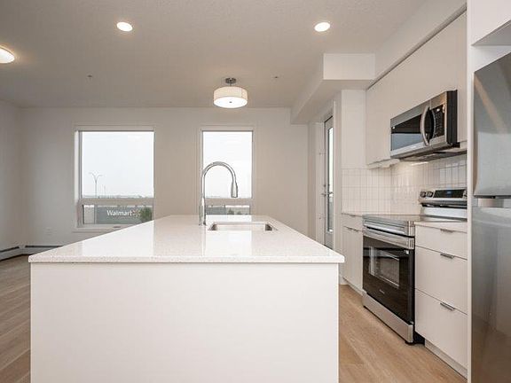 This 2-bedroom + den, 2-bathroom condo at East Hills Crossing offers a spacious and versatile layout with 858 sqft of thoughtfully designed living space. Ideal for professionals, couples, or small families, this home combines modern finishes with functional design in one of Calgary's most vibrant southeast communities. Bright & Functional Interiors Open-concept floor plan that maximizes both comfort and flow. Expansive windows that flood the unit with natural light. Wide vinyl plank flooring for a modern, low-maintenance touch. In-suite laundry for everyday convenience. Stylish Kitchen & Dining Large eating-bar island with durable quartz countertops. Floor-to-ceiling white cabinetry with under-cabinet lighting. Classic white backsplash for a clean and open look. Full stainless steel appliance package. Private Living Space Primary bedroom with a walk-in closet and sleek ensuite bathroom. Second bedroom perfect for guests, children, or roommates. Versatile den ideal for a home office, study, or reading nook. Second full bathroom with modern finishes. Building Amenities & Features Secure underground parking stall included. Residents' gym and fitness facilities. Rooftop terrace for relaxing or entertaining. Pet-friendly community (with approval). Large private balcony for outdoor enjoyment. About Belvedere & the Community Belvedere is one of Calgary's most thoughtfully planned southeast neighbourhoods, offering the perfect balance of urban convenience and outdoor lifestyle. Within walking distance, you'll find East Hills Shopping Centre, home to Costco, Walmart, Cineplex, restaurants, and more. The location provides quick access to Deerfoot Trail, Stoney Trail, Glenmore Trail, and 17th Avenue SE, making commuting simple. For healthcare professionals or those who value proximity, the South Health Campus is just a short drive away. Closer to home, Belvedere offers over 13 acres of parks, trails, open spaces, and a storm pond, as well as one of Calgary's most significant wetland complexes connecting residents to nature right outside their door. This condo at East Hills Crossing delivers the perfect blend of modern living, thoughtful amenities, and community charm. Credit Check Required Rates based on a 12-month term Heat and water included