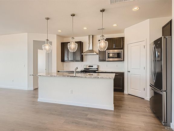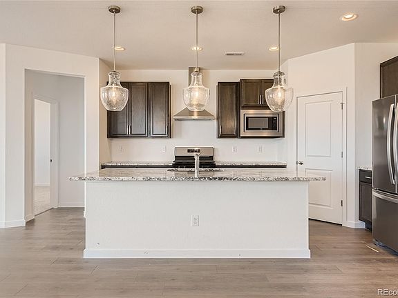 Brand New home in Ascent Village at Sterling Ranch TO BE COMPLETED IN DECEMBER!  The desirable 'Aspen' one-story RANCH home features an open great room that is perfect for entertaining, owner's suite with luxury walk-in shower, and THREE additional bedrooms!  Stunning chef kitchen with 42"  white cabinets, quartz countertops, tile backsplash, Whirlpool stainless appliances including gas range, and oversized kitchen island with separate dining area. You don't want to miss the opportunity to live in this AMAZING home! 9' ceilings throughout home and energy saving features including tankless water heater and TRANE furnace. Enjoy amazing community amenities and 30-miles of trails right outside your front door!