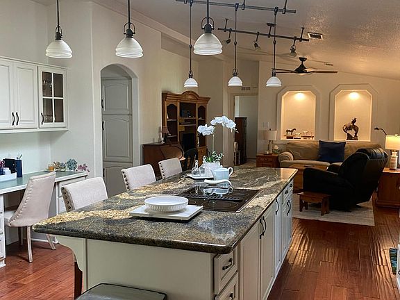 Beautiful and spacious 1,740 sq.ft. home in the highly desired 55+ Crescent Run Community. This property features skylights throughout, 2 large bedrooms, 2 full bathrooms, brand-new carpet in the living and dining areas, reverse osmosis at the kitchen sink, and stunning granite countertops. All furniture is negotiable. Enjoy the additional 334 sq.ft. Arizona room and the privacy of having no neighbors behind. Crescent Run offers resort-style amenities including a heated pool, whirlpool spa, clubhouse with ballroom, pickleball, fitness center, dog park, RV storage, and a full calendar of social activities.