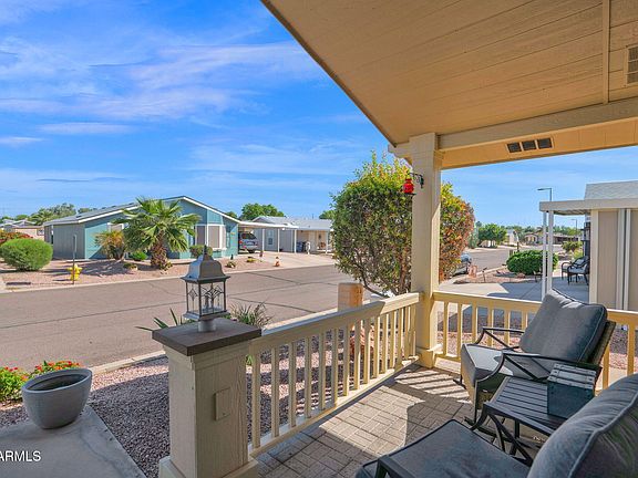 Welcome home! This beautifully maintained 2-bedroom plus den/flex room home is truly turn-key and move-in ready. Enjoy a new spacious enclosed Arizona room (valued at $30,000) featuring its own mini-split system—perfect for relaxing year-round. Inside, you'll find new blinds throughout (2023), a newer HVAC system (2023), new irrigation system (2024) for easy yard maintenance, and a sleek new induction stove (2025) for the chef at heart. The home also includes multiple storage sheds (x4), offering plenty of space for hobbies, tools, or a man-cave setup. Most furniture and furnishings convey with the sale, making this home completely ready for you to move right in and start enjoying from day one. Don't miss this stunning, thoughtfully updated home!