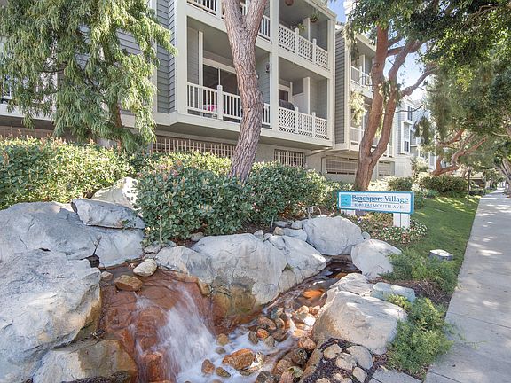 Located in the desirable Beachport Village community, this townhome is stylish, convenient, and only minutes from the beach. Comfort and function coincide within the spacious living room & dining area featuring a fireplace, newer laminate flooring, high ceilings and half bath, all leading to your spacious private balcony. The upgraded kitchen has newer stainless steel appliances, a large window and coved recessed lights. Upstairs, a sundrenched stairwell with skylight and a laundry closet leads you to both bedrooms. The charming master bedroom suite features vaulted ceilings, a private balcony, and ample storage with a walk-in closet, large secondary closet and linen storage. A bright & airy second bedroom with ensuite bathroom complete the upstairs layout. This prime end unit, offering natural light & treeline views from every window and two private, large balconies is a rare offering. Complex amenities include tennis courts, swimming pool, spa and sundeck.