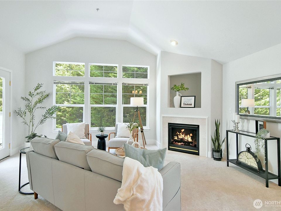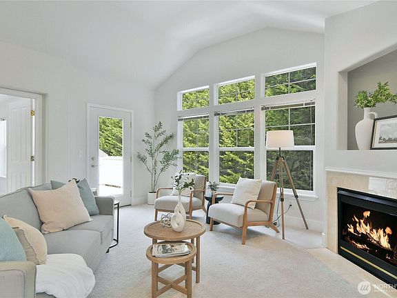 RARE Sundrenched top-floor corner unit with skylights in the desirable gated Montclair community at Five Corners! This bright home offers accessible, stair-free living with elevator access, an accessible bathroom, gas cooking, a cozy gas fireplace, and brand-new in-unit laundry. Enjoy peaceful treetop views from your private balcony, plus a storage unit and two covered parking spots in the secure garage. Plenty of guest parking. With no rental cap, no pending assessments, and HOA dues covering water, sewer, garbage, security, earthquake insurance, and more, this is carefree condo living. Just minutes from downtown Edmonds, the waterfront, and Five Corners amenities!