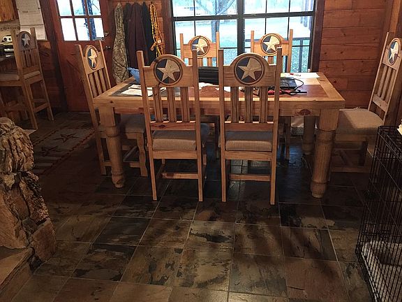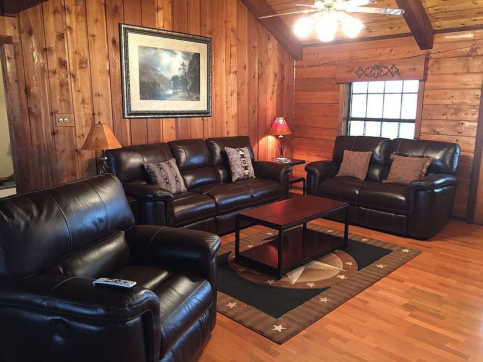Beautiful Log cabin with incredible wood interior. All bathrooms remodeled also and the kitchen. Flagstone walkway and patio with full front and back porches. Lifetime metal singles newly added to the roof. 3 car garage with shop and barn. Also new hay barn, cattle and loafing shed. Has 2 tanks and 1 large lake stocked with fish. Beautiful stone gated entrance with views of your 40 manicured acres.