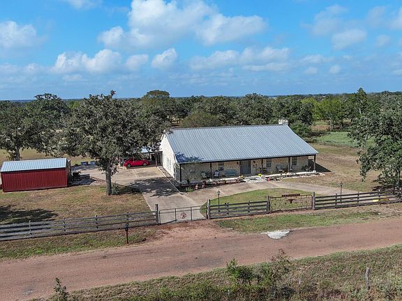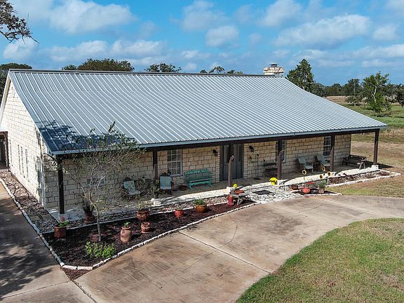 Experience the heart of Texas country living in this cozy 4-bedroom, 2-bath ranch-style home set on 2 peaceful acres surrounded by wide-open ranch land. From sunrise coffee to sunset views, every window frames a breathtaking slice of the countryside. The open-concept floor plan welcomes you with a spacious living area featuring a beautiful stone wood-burning fireplace — the perfect spot for gathering on cool evenings. The stone exterior and durable metal roof add rustic charm and low-maintenance appeal. Step outside to a stone patio ideal for grilling, relaxing, or stargazing, and don’t miss the handy shed out back for tools, hobbies, or storage. The large living room, dining, and kitchen are open to each other and there is a long breakfast bar! The kitchen has a lot of countertops and cabinets plus a large pantry closet@ The 4th bedroom is just off the entry and used as an office/sewing room now and it is connected to the primary bedroom. There are two walk-in closets in the primary bedroom and a nice primary bath with a nice shower and double vanity! There are two guest rooms with a jack and jill bathroom between them with a tub/shower combo and large vanity area! The nice, covered front and back porch are great for relaxing or entertaining! Located just 10 minutes from downtown Smithville and 50 minutes from Austin-Bergstrom International Airport, this property offers the serenity of country life with the convenience of nearby town amenities. The Cistern store has the best burgers around and lots of other items on their menu with live music often! If you’re dreaming of a place where the stars shine brighter and the pace slows down, this one’s calling your name. ??? #countryliving #pastureviews #coveredporches #openconceptplan