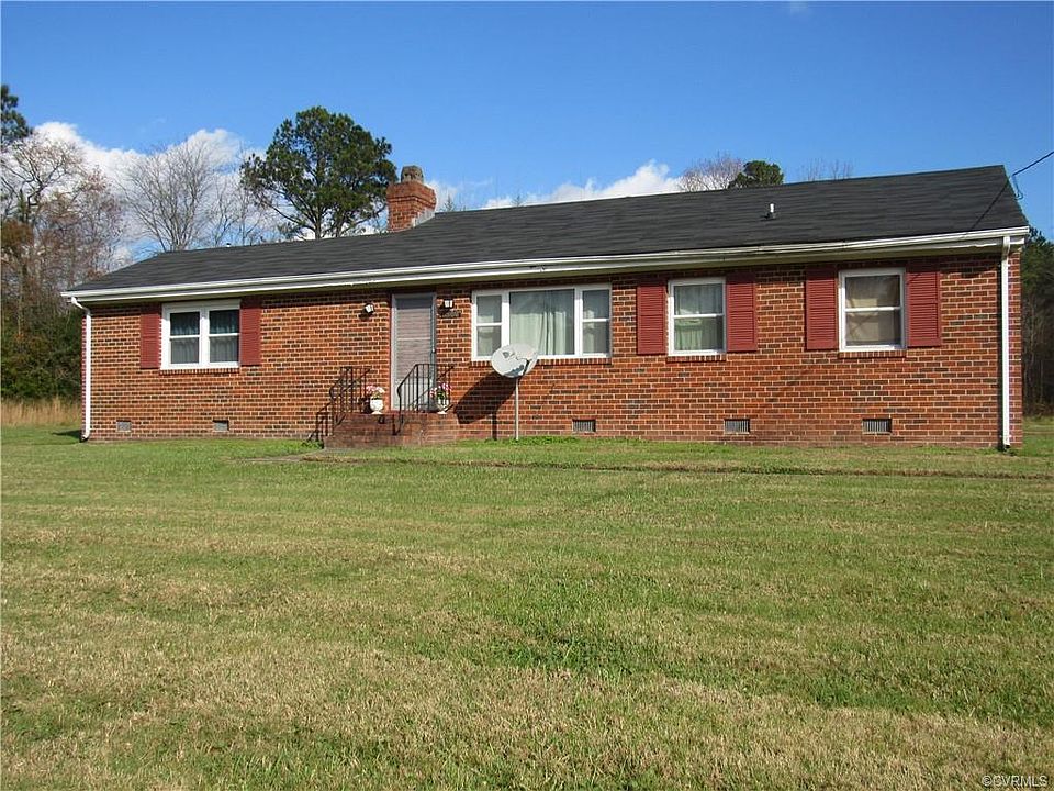 Sturdy rancher with great bones and floorplan in need of a new family and a little TLC. Original block construction with brick veneer exterior. Home features nice hardwood floors throughout and a split floorplan with the master bedroom on one side of the home and the two extra bedrooms on the opposite side of the home. Nice size living room and formal dining room. Home has newer replacement windows and roof appears to be less than 10 years old. Propane gas cooking and gas log fireplace. Deep artesian well. Central A/C is not working per seller. Home is located on a 2.85 acre lot adjacent to the Charles City County Community Center facility. Property sold as-is. Inspections are for informational purposes only. Please include as-is addendum with all offers.