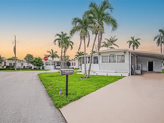 2 Bedroom/1 Baths, Has renovations throughout. Central A/C installed new in 2015, Great Roof condition. Doublewide, New floors, both sides one elevation. Master bedroom has space to adapts easily to add new shower. Has wall to wall closets in both bedrooms. Very large master bedroom, Florida Room can be used as an office or 3rd bedroom. You Own the Land, HOA around $118.50 per month, 55 years old plus retirement community, 2 storage sheds, one with washer and dryer that stays and with all the tools show. Recreations, 3 pools, Davie Golf Course adjacent to park ,lots of local shopping available, Ft Laud airport 9 miles away. Great Location.