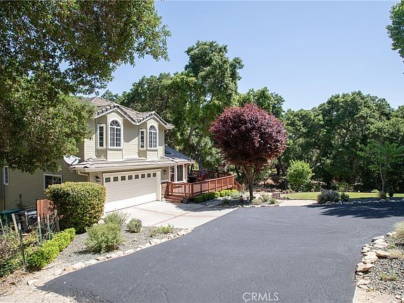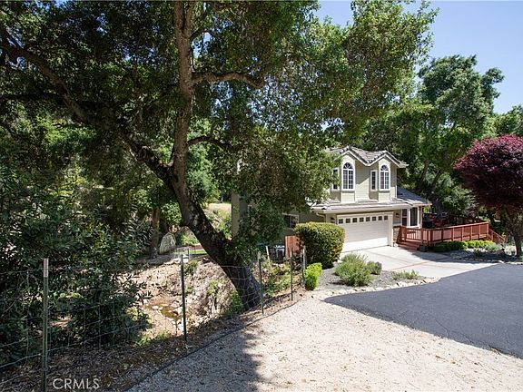 Nestled in a lush oak forest, this nearly 2-acre west side Atascadero home features 3 bedrooms, 3 bathrooms and has been tastefully updated. Through the front door you enter a dramatic open concept space with vaulted ceilings and skylights which flows seamlessly from living room to dining area, dramatic chef’s kitchen and adjacent cozy family room with a wood burning fireplace. Ample natural light floods the great room which also features recessed lighting. The kitchen has been thoughtfully designed with multiple windows, soft close cabinetry, pot drawers and a large, dramatic center island. There are additional windows and doors in the dining and living areas leading on to the huge deck for outdoor dining and relaxing overlooking the tranquil, parklike setting. Upstairs is the large primary bedroom ensuite, which has two closets and a balcony for enjoying the serene setting over morning coffee. The primary bathroom includes a soaking tub and separate shower. Also upstairs are two additional guest bedrooms, one with a walk in closet, and a guest bathroom. Downstairs is a den perfect for use as an office, TV watching or video games and which has a door onto yet another deck overlooking the oak trees and creek. Also on the lower level is a large storage area under the home. Surrounded by trees, there are extensive outdoor living areas that take advantage of the privacy, views & wildlife. A peaceful creek meanders through the back of the property and includes two walking bridges to cross it. There is a large garden area with raised beds enclosed by deer fencing and a large storage shed. Enjoy the best of both worlds - country living yet only minutes to town and Highway 101, allowing you convenient access to all that the Central Coast has to offer. Information deemed reliable but not guaranteed. Call your agent today to set up a showing!