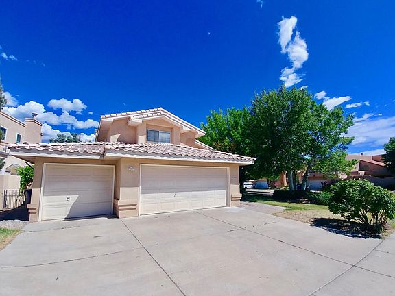 Beautiful corner lot home in fantastic Far NE Heights neighborhood. Enjoy a remodeled 2400 sf 4 Bedroom 3 Bath home with a 3 car garage. Enormous gourmet kitchen boasts butcher block counters throughout, with new solid wood cabinets, a built-in desk and additional work space. No carpet! Luxury Vinyl Plank flooring and tile throughout. Two large living areas downstairs complimenting an open and flowing floor plan. All bedrooms upstairs have ceiling fans with gracious closet space. Master suite features a balcony, walk-in closet, a deep soaking garden tub (w/ separate walk-in shower), and a double vanity. Out back, there is a covered patio, a tree house, and tons of running around room. Full Landscape Maintenance included! Just blocks to some of the best public schools ABQ has to offer.