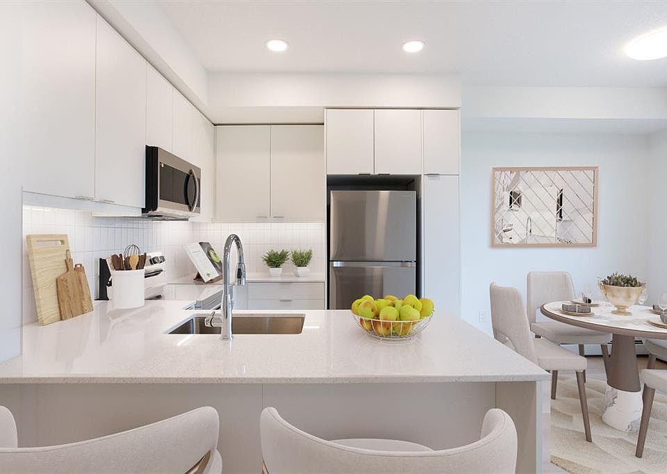 Ground level accessModern kitchenBright open-concept layoutSpacious private deckIn-suite laundry