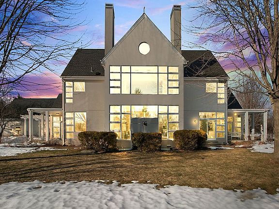 Nestled on 5+ acres at the end of a long, winding driving sits a contemporary architectural jewel. Designed by an architect for his own personal residence, this exquisite home blends style and function while welcoming the outdoors in with commanding views from every room. As you enter, you are ''wowed'' by a wall of windows, stunning central gas fireplace with sleek marble surround and incredible natural light as the rear of the home is south facing. Easy floor plan harmoniously connects the rooms to one another. Appreciate the beautifully updated white kitchen with quartz countertops and coveted walk-in pantry. Retreat to the private first floor master suite and enjoy quiet moments in the den/office. Finished lower level features full bath & abundant storage. Spectacular home & setting.