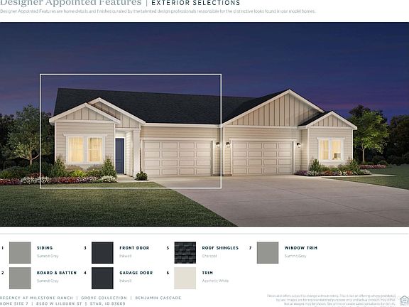 "The Benjamin" An open concept foyer and flex room flow into the charming great room, offering views of the large covered patio beyond. Overlooking a casual dining area, the well-equipped kitchen is a chef's dream, complemented by a large center island with breakfast bar, plenty of counter and cabinet space, and a roomy walk-in pantry. Enhancing the impressive primary bedroom suite is an expansive walk-in closet and a lovely primary bath with dual-sink vanity, a large luxe shower with seat, and a private water closet. Located at the front of the home is an additional secondary bedroom and shared hall bath. 2 car garage. Discover the Regency difference at this premier new home community for 55+ active adults. Home is under construction. Photos are similar. BTVAI