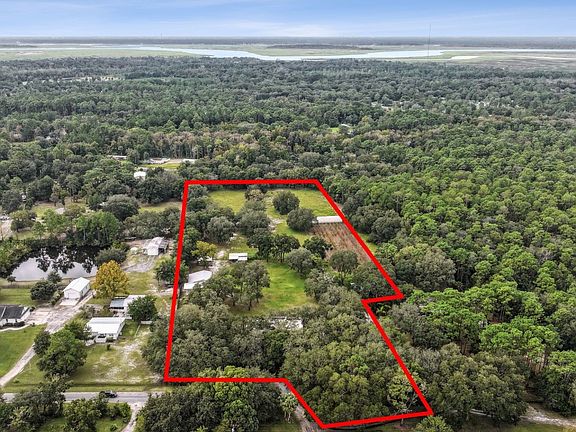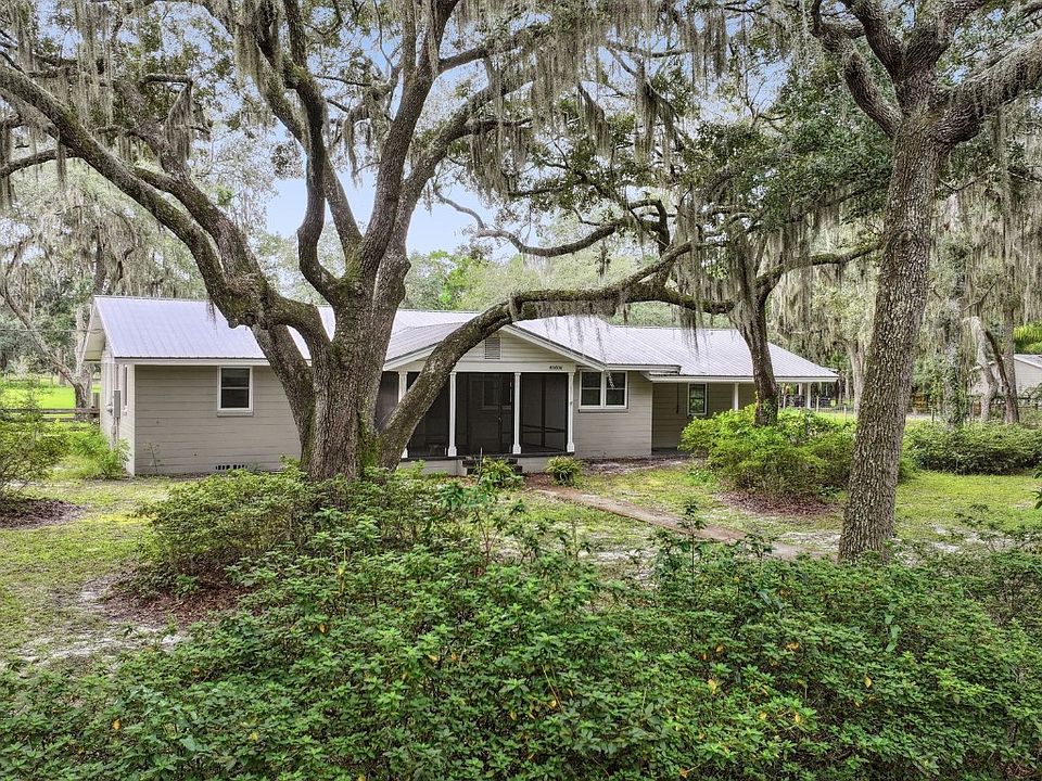 Experience the tranquility of farm life just minutes from the vibrant heart of Fernandina Beach. Nestled at the end of a cul-de-sac, this private and serene 6+ acre property offers ample space and seclusion. The land features a thriving ½-acre blueberry orchard, gorgeous mature trees throughout, a spacious detached garage, an additional accessory building, and two RV sheds. The beautifully maintained 3-bedroom, 3-bath home showcases wood floors, updated bathrooms, and a large open kitchen with stainless steel appliances, an island, and a professional-grade gas stove. Enjoy peaceful moments on the screened-in porch, where you can relax and take in the views of this beautiful property. With slider glass doors leading to the patio, solar-powered electricity, a full-home generator, and a durable metal roof, this home is move-in ready, blending modern convenience with rural charm. Book your private showing today!