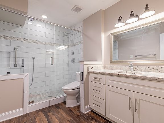 Beautiful hardwood floors and granite countertops enhance the interior's elegance.