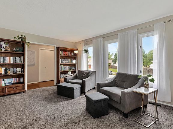 Light & Bright all electric Quad Level with Beautiful Remodeled Kitchen. New Quartz Kitchen features brand new farm-style skirt sink, glass tile backsplash, and new whisper-shut cabinets with a large buffet style countertop with roll-out shelves & built-in trash door. Stainless Steel appliances all new in November 2022 even includes a glass-top range that can be managed from a phone. Spacious dining room opens to both the kitchen & living rooms. Upper level bedrooms with jack-n-jill style bathroom. Lower Level Rec Room has a Woodburning Fireplace & walk-out door to the nice stamped concrete patio area & privacy fenced backyard. There are 2 bonus rooms (each with closet space) in the basement plus the 3/4 bathroom/laundry room. Extra items of note: knock-down ceilings, roof is only 5 years old, brand new water heater & sump-pump, 2-car side load garage is spacious. Across the street is easy access to the area lake with dock & gazebo area.