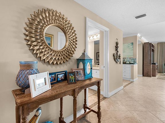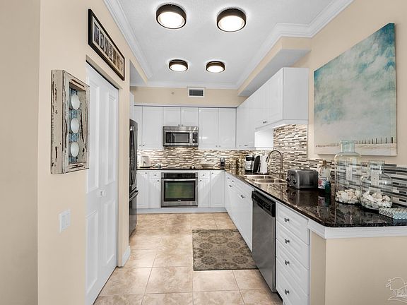 Simply the best! This 14th floor 3br/3ba west view unit has a coastal elegant décor and has never been rented. It has tile and granite counter tops throughout, plantation shutters, custom drapes, crown molding, and renovated bathrooms with non-slip travertine tile showers, and a new water heater. Come experience Navarre Beach and see there is no comparison to the trendsetting architecture, the spaciousness, the privacy and circular terraces everyone will enjoy. Amenities include covered parking, Olympic size swimming pool, tennis/pickle ball courts, fitness room/social center with a full kitchen for parties and entertaining. This unit is sold fully furnished.