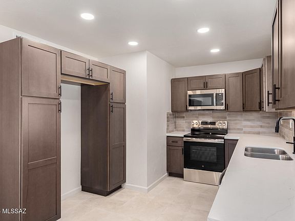 Beautifully Updated Ranch home 4.78 Acres in Coveted NW Tucson! Charming slump block ranch built in 1974, thoughtfully upgraded throughout. Enjoy 4.78 private acres with mountain views and room for horses, gardens, or future expansion. Interior features stylish 12x24 ceramic tile flooring and fresh paint. Gorgeous new kitchen with warm brown cabinetry, quartz countertops, stainless steel appliances, and modern plumbing and electrical fixtures. Bathrooms fully remodeled with new cabinets, quartz tops, elegant tile shower surrounds, and contemporary fixtures. Brand-new roof and exterior paint provide lasting quality and curb appeal. Experience modern comfort and timeless Tucson character in a peaceful Northwest setting close to shopping, dining, and schools. Move-in ready