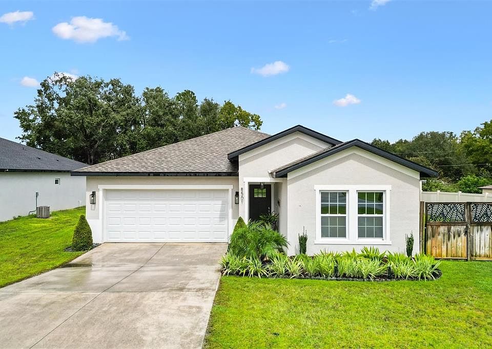 One or more photo(s) has been virtually staged. Better than new! Built in 2023, this beautiful 3 Bedroom, 2 Bath home in ORANGE BLOSSOM HILLS, an ALL-AGE Community adjacent to The Villages, Florida off Hwy 42 in Summerfield, offers modern comfort, quality upgrades, and a fantastic location! Step inside to find 9’ Ceilings and LUXURY VINYL PLANK FLOORING throughout. The open Kitchen Features QUARTZ countertops, TILE Backsplash, SOFT-CLOSE Cabinetry, Stainless Steel Appliances, and a LARGE walk-in pantry. The SPACIOUS PRIMARY SUITE includes Dual sinks with QUARTZ counters, large walk-in Shower and Closet, Shiplap accent wall. Split bedroom floor plan with Jack and Jill bathroom between second and third bedrooms. Enjoy year-round Florida living in the screened LANAI or step out onto the DECK with built-in seating, perfect for entertaining. The ABOVE-GROUND POOL, SUNK HALF WAY IN-GROUND and surrounded by a CUSTOM DECK, includes an in-ground pool pump system. Enjoy cooler evenings entertaining around the Fire pit. The fenced yard is beautifully landscaped and has an irrigation system with new heads. Additional features include indoor laundry, 2-car garage, RV PARKING WITH HOOKUPS AND PUMP-OUT STATION, NEW Lenox HVAC system (2025). Constructed of CONCRETE/BLOCK/STUCCO. Best of all, there’s NO HOA! Shopping, restaurants, medical facilities, and The Villages are all golf-cart accessible. This move-in-ready property is perfect for families or anyone seeking a modern, low-maintenance home with plenty of outdoor living space. Schedule your showing today before it's too late!