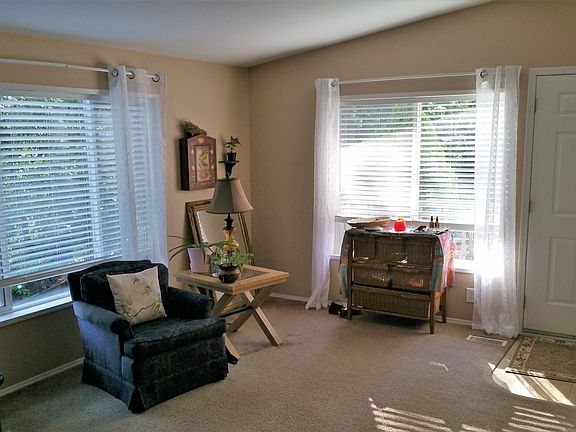 Welcome home to this gorgeous 2008 Fleetwood Broadmore. This wonderful home offers approximately 1272 SF of room with large open living area, custom island complete with storage, knotty Alder cabinets, bay window, glass top stove, built in microwave and side by side refrigerator in the kitchen, linen storage in the hall, walk in shower in the main bath and sliding patio door to private deck from master bedroom. Living room measures approximately 23x15', kitchen/dining combo 17x12', master bedroom 15x10.5', 2nd bedroom 10x10' and 3rd bedroom 10x13'. Front deck measures approximately 13.5x4', front awning 13.5x5', rear deck 42x13', rear awning 10x13', carport 19x11' and 2 storage buildings 19x11' & 3x5'. Heat pump.Park rent is approximately $624 per month.