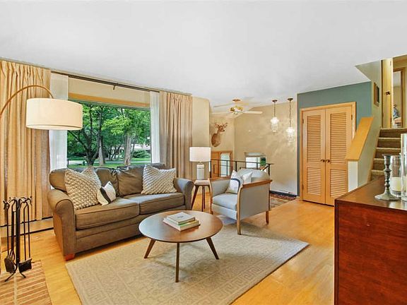 This split level home in the prestigious Greendale School District is waiting for you. The home is conveniently located (close to 84 South, the Greendale Village Center and Southridge Mall), but feels secluded and private on a 1/2 acre wooded lot at the end of a cul de sac. The inviting living room features hardwood floors and natural fireplace, & connects to a spacious eat in kitchen with floor to ceiling windows, custom shelving & a walk out to the deck. Upstairs, you'll find 3 bedrooms & full bath with jetted tub. Bathroom is attached to the spacious master bedroom. Lower level has a large family room, 4th bedroom perfect for an office or playroom, and a bathroom with shower. Plenty of storage in the partial basement, and the attached 2.5 car garage is convenient for all seasons.
