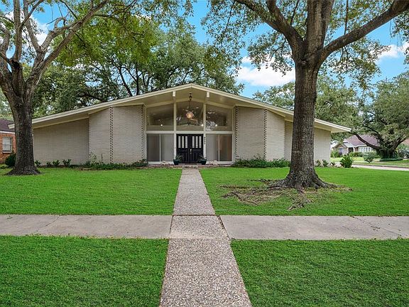 Stunning Mid Century Modern home located in Sharpstown Country Club, a golf course community. High ceilings & ample windows make this home light, open, & airy. Spacious kitchen w/granite countertops, gas range (new!), island, plenty of cabinet & storage space. Huge utility room off kitchen w/utility sink, built in desk, & remodeled half bath. This beauty also features wood flooring throughout most of home, new carpet in secondary bedrooms, built-ins, insulated Low-E windows & Plantation shutters. Whether you enjoy entertaining, spending time with family, or just relaxing, the three living areas flow seamlessly and cater to just about any lifestyle. 2 brick fireplaces! Double sinks in both master & secondary baths. Storage space galore in this gorgeous home. Many wonderful Mid Century Modern details preserved. Recent roof. Huge, corner lot!