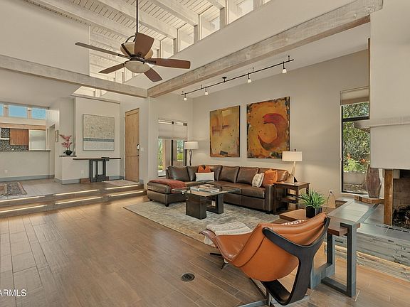 Immaculate home in Skyranch! Very private setting! LG lot w/VIEWS! Stunning landscaping; specimen cactus & mature, happy trees!North/South exposure. Huge courtyard off DR.Spacious Back patio w/room to expand if you wish. Great entertainment spaces. No home to the North & never will be. Common area to the West, so only one common wall. Updated throughout! Move in Ready!Chic & lovely 2 BD/2BA/2CG. Signature Skyranch architecture. Soaring ceilings, clerestory windows. Lg Primary w/sitting area.Bath area offers Soaking tub; dual sinks; walk in glass shower, granite countertops, custom closet. Auto shades in LR.Thermador (stainless appliances); fridge. New washer/dryer convey! Built in BBQ! Home plumbed w-water purifier.PRIVATE TENNIS/DOGGY PARK/ POOL! See Doc Tab for home improvements!