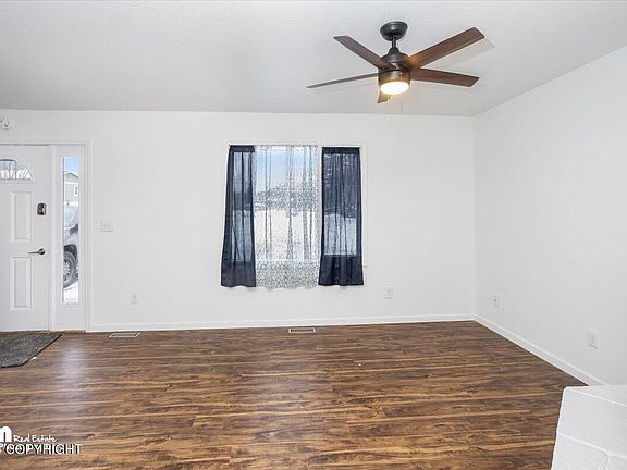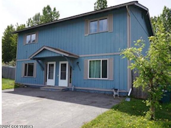 Beautiful 2023/24 remodeled unit w/mountain views on a quiet cul de sac, a fenced back yard w/newer shed, back yard fire pit area, fireplace, and spacious bedrooms. Home backs to Windsong Park with easy access to trail, pond, and playground. Easy commute to JBER, Hospitals, and the Valley. Schools and Shopping just minutes away. Shows like brand new! Book your showing today!Please note that current snow in driveway does not reflect actual parking space. Parking pad extends to each corner of the building. Snow was not completely plowed during remodeling due to it being vacant while worked on.