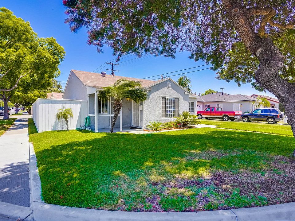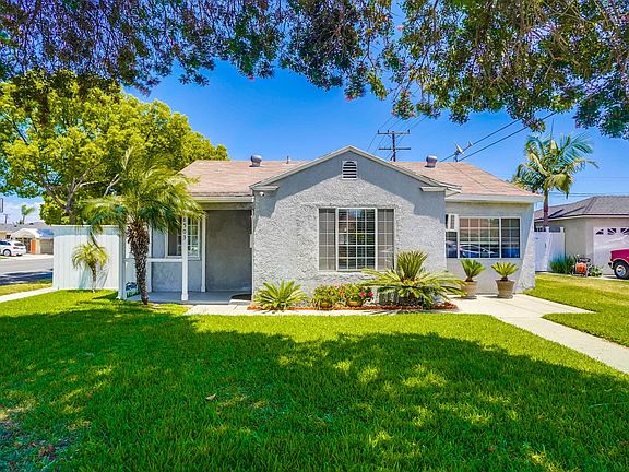 The perfect Downey Beauty! Situated on a peaceful neighborhood in Downey is this beautiful home with 2 bedrooms and 1 bathroom. Some features include hardwood and tile flooring, built-ins, plenty of storage space, French windows and more! There is a spacious living room that has recessed lighting and crown molding. Open to the living room is a charming dining area. Enjoy creating meals in a bright kitchen that is equipped with stainless steel appliances, granite countertops and a mosaic tiled backsplash. The kitchen has an additional space that has a breakfast bar where you can add bar stool seating. Bedrooms are airy and well-lit with natural sunlight. This corner lot beauty features a picturesque exterior, a detached garage, and a 2-car carport. The back yard offers a fresh lawn and a covered patio with a ceiling fan/light fixture and tile flooring, creating an ideal space for relaxing or entertaining. This is perfect for a first-time home buyer too!