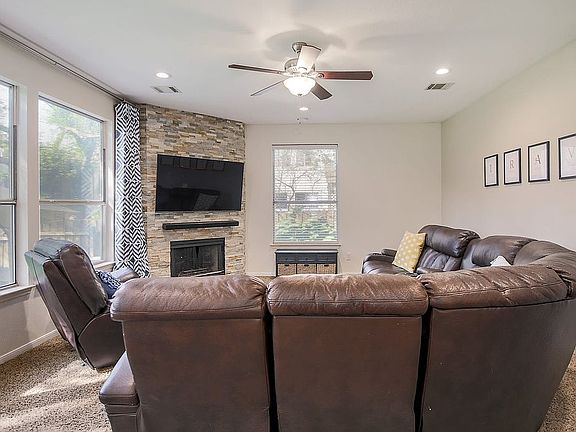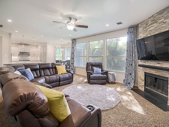 Outside / Yard: Located in desirable Woods of Brushy Creek, this lovely family home is nestled on a gorgeous, fully landscaped yard with mature oak and pecan trees and provides the rare opportunity to have a home that directly backs up to the walking trail and green belt. The back yard has renovated pergola, custom made sandbox (and cover folds into seats), along with a side by side 13-foot hand crafted swing set that is envy of all the kids in the neighborhood. There is also a raised bed on the side of the house perfect for an herb or flower garden. From the front yard, you can easily access the back with a gate on either side of the house along with a locking gate that can lead you from the backyard to the walking trail. Kitchen: The kitchen has been completely remodeled with new cabinets with top-of-the-line real wood drawers all with soft close hinges and drawers topped with quartz countertops. Has a pot filler over the 5-burner gas cook top paired with a powerful, externally vented hood. It features all new matching stainless steel appliances and a large farmhouse sink, under cabinet LED lighting, breakfast bar and breakfast nook. The custom lit, very large pantry will allow space for all your food and has outlets to be used as an appliance caddy, or easily hold the small kitchen appliances. Family Room: The family room overlooks the spacious backyard with a wall of windows and a floor to ceiling stone fireplace with a hidden access door even Indiana Jones would appreciate. The Formal Living could be used as a work from home space or easily converted into a closed study. With 24 new LED recessed lights downstairs, you can set the right mood in any room with the dimmer switches. Bedrooms & Master Suite: A Large Master Bedroom with sitting area is on the 2nd level complete with a large walk-in closet, new cabinets and countertop double vanity, heated Jacuzzi Tub and Separate shower. The three other upstairs bedrooms can easily accommodate all your family’s needs due to their own walk-in closets. The full bathroom also has new cabinetry and quartz countertops. This bathroom has also been updated and customized to store any personal toiletries and give everyone their own sink! Attic: The entire attic is accessible due to floorboards being expertly installed. There are also storage racks set anchored to the trusses for safe and convenient access. The entire house has benefited from the excess insulation; the summers aren’t as hot, and your utility bills are not as high due to the time and money put into insulating the attic. The new HVAC system also helps with that! Garage: In addition to ample attic storage space, the garage also has been built out with large, heavy duty overhead storage spaces. It also has been updated with ample lighting, new paint, and epoxy coating on the floor. Tucked away in its own closet, is a tankless water heater that is just over 5 years old. Nearby is a new ergonomically sound water softener with carbon tank filter. This home never lost power during February 2021 snowstorms or the recent winter weather due to its proximity to a major hospital and fire department. General Updates: Exterior painted, James Hardi cement plank siding, new solar screens, new front, and rear doors all in 2017, and new HVAC in 2013 and 2015, all new flooring in 2011 and updated flooring in 2022, new roof in 2010.