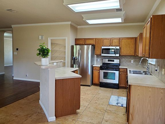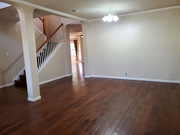 This home is not only open and spacious, but also comes with an incredible view you'll never get tired of coming home to. You'll love the large open kitchen with spacious island, gass cooking, plenty of oversized cabinets, oversized walk in pantry overlooking a massive stone gas fireplace. High end, hand scraped hardwood floors throughout downstairs Three open living areas and two dining areas. All bedrooms are oversized with enormous walk in closets. Four hallway closet spaces as well. All high efficiency windows and new a.c. units. All new wood blinds throughout. Gorgeous backyard has large covered patio for your enjoyment, and lots of space for your family, pets, and guests. The large back yard includes mature shade trees. This home will not last. Make your appointment today. Will consider all applicants. Tenant pays all utilities.