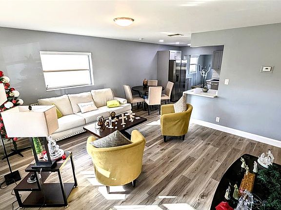 Ceiling fansCentral airWood floorDining roomCeramic tile floorsUpdated kitchen