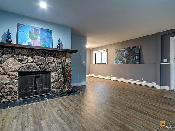 Completely remodeled two bedroom condo two minutes for JBER. Enjoy living on your own in this low maintenance end unit in Alpine Village. Tasteful colors make this an easy to decorate new home for you. Rustic vinyl plank flooring throughout. Executive height kitchen cabinets complimented with stainless steel appliances. Soak away the day in the deep jetted tub in the soothing spa like bathroom.