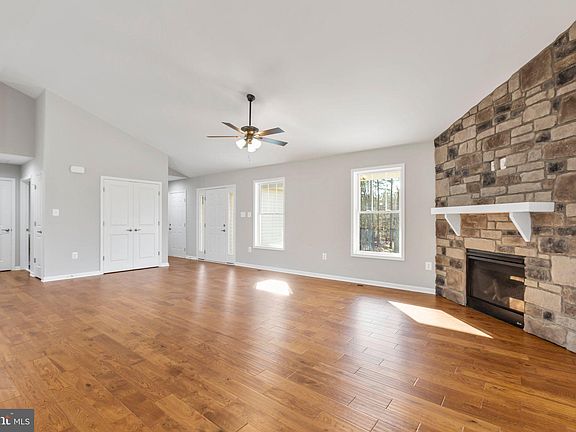 This spacious three-bedroom, three-bath home boasts an open floor plan . tucked away perfectly on a wooded lot in Spotsylvania. Prepare to be impressed with the stunning features and meticulous attention to detail that make this house truly exceptional. Step the great room with a cozy fireplace adorned with a beautiful stone surround. It's the perfect spot to relax, unwind, and create lasting memories with loved ones. Whether it's a chilly winter evening or a cool summer night, this space exudes warmth and comfort. Gorgeous kitchen will inspire your culinary adventures featuring white soft-close cabinets, a large blue island featuring a vegetable sink and wine rack, a farmhouse sink, stainless steel appliances, a stunning tile backsplash, and exquisite granite counters Indulge in the ultimate retreat in the exquisite primary suite with his and her closets, including a custom walk-in closet, a charming barn door opens up to reveal a luxurious bath with beautiful custom tile work and a tempting soaking tub. Endless possibilities with the full walkout basement with a full finished bath, this space offers the flexibility to create your ideal entertainment area, home gym, or an additional living space to suit your unique lifestyle. Let your imagination soar as you envision the boundless potential this gorgeous home provides. Available and ready now. Two additional home sites available with this floor plan.