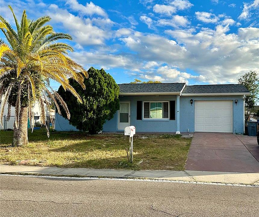 This updated 3-bedroom, 1-bath home boasts a new roof, a new AC and energy-efficient upgraded windows. Inside, the layout is well-designed, featuring a welcoming living area upon entry, two bedrooms and a bathroom to the left, a dining room to the right, a bonus room and an open kitchen overlooking the backyard through a large window. Outside, a spacious fenced backyard with a screened-in patio invites you to enjoy morning sunrises and coffee. Plus, the property is conveniently located near shopping, libraries, restaurants, parks, and just 45 minutes away from Tampa airport. NOT in a Flood Zone! The garage has been converted into the 3rd bedroom. Don't miss this fantastic opportunity!