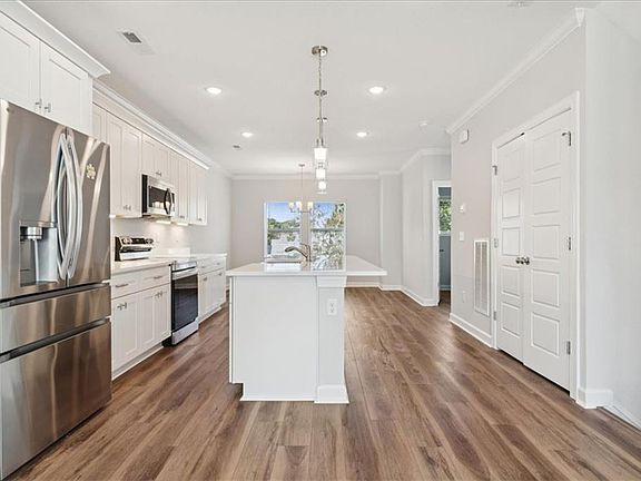 Located in the desirable Mainsail community, this like-new construction end-unit townhome offers flexible living and tons of features. The first floor includes a bedroom that can serve as a second primary or guest suite, complete with a full bathroom and closet. Enjoy an open floor plan with 9-ft ceilings, LVP flooring, stained hardwood stairs, an electric fireplace, and a custom kitchen with soft-close cabinets. Additional highlights include an attached rear-load garage and access to a fenced community park. Don’t miss this opportunity to own new construction without the wait! VA assumable loan available! Ask for details.