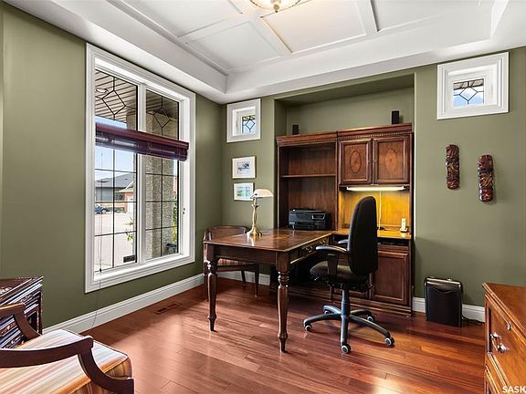 Welcome to this meticulously maintained custom-built bungalow by Munro Homes, ideally located just steps from the scenic Wascana Creek walking paths and McKell Wascana Conservation Park. This home has been lovingly cared for by its original owner and is truly move-in ready! Step inside to a spacious, welcoming entry that opens to a warm and inviting main floor with open-concept living. The kitchen features solid surface countertops, a gas range, walk-in pantry, and abundant cabinetry with a large island — perfect for cooking and entertaining. The living room offers a cozy gas fireplace, while the dining area easily accommodates family gatherings and opens onto a screened-in deck, extending your outdoor living space through three seasons. At the front of the home, a bright den provides the perfect office or reading space. The main floor also includes two bedrooms and two full bathrooms, including a spacious primary suite with dual walk-in closets and a luxurious ensuite featuring a soaking tub, walk-in shower, and dual sinks. A convenient laundry room with built-ins completes the main level. The fully finished basement offers an incredible amount of space to relax, work, or play — ideal for a home theatre, gym, games area, or craft space. You’ll also find a third bedroom, a three-piece bathroom, and plenty of storage in the utility room. The in-floor heating adds a wonderful touch of comfort during cooler months. Additional highlights include an insulated and drywalled double attached garage (21’ x 23.5’), underground sprinklers with drip lines, and a fully fenced, xeriscaped backyard for low-maintenance living. Contact your sales agent today to schedule your private showing!