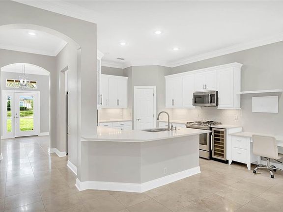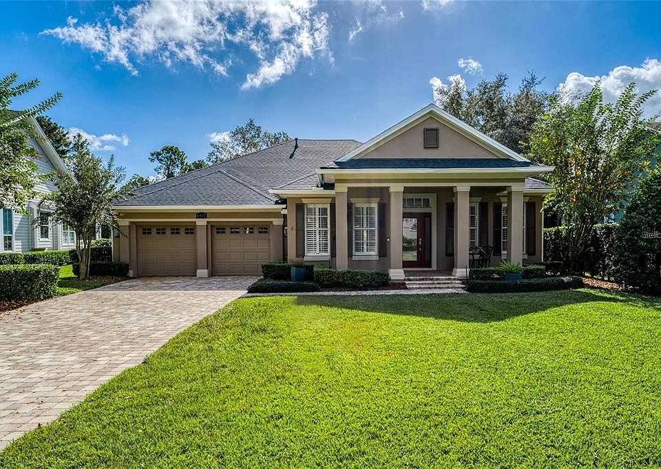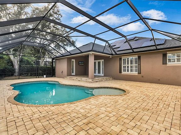 This charming home is nestled on a quiet, tree-lined street inside the highly sought-after gated community of Keene's Pointe. This single-story residence is equipped with full-home solar power, offering energy efficiency and reduced electric bills! Featuring a split floor plan with 4 spacious bedrooms and 3 full baths across 2,398 square feet, this home provides comfort and functionality for the entire family. Enjoy the Florida lifestyle with a screened-in pool surrounded by lush, private landscaping and a fenced backyard backing up to the breathtaking 440-acre Tibet-Butler Nature Preserve the perfect retreat for peace and privacy. The primary suite boasts a luxurious bathroom with a soaking tub, dual vanities, and a large walk-in closet. Three additional bedrooms provide ample space for family or guests. Additional features include tile flooring throughout, elegant window shutters, updated appliances, and a wine refrigerator in the kitchen. Located within the exclusive gated community of Keene's Pointe, residents enjoy beautiful parks and walking trails. Conveniently situated just minutes from top-rated schools, world-famous Disney parks, upscale restaurants, cozy cafes, hospitals, and major highways, this home truly has it all comfort, convenience, and an unbeatable location!