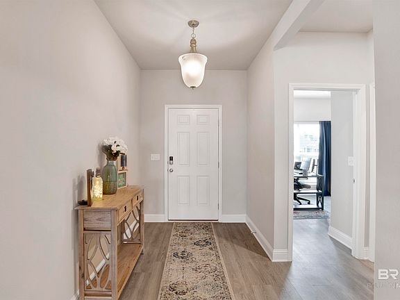 Enjoy the convenience of living close to entertainment, dining and shopping while residing next door to a remarkable 600-acre nature preserve—an ideal retreat for nature enthusiasts. Plus, with a quick 15-minute drive to the beach, the dream of coastal living is at your fingertips. The subdivision also features a beautiful community pool, tennis courts and basketball courts. Beyond its fantastic outdoor amenities, this impeccably maintained and updated 4 bedroom, 3 bath, GOLD fortified home exudes a fresh coastal design with an open-concept floor plan highlighted by an oversized living area boasting tall trey ceilings and an eye catching custom fireplace feature wall. Tall trey ceilings create an airy ambiance that complements the modern kitchen and dining areas that are tastefully illuminated with upgraded lighting fixtures. The heart of this home is the great room area that consists of the kitchen, living room area and dining areas. The kitchen boasts a large island, beautiful granite countertops, contemporary grey cabinets, a stylish tiled backsplash, a gas cooktop and top-of-the-line stainless steel appliances, including a refrigerator. Step outside the great room area to your outdoor retreat that is made for relaxation and entertainment. This home is ready for outdoor living with an inviting covered porch complete with a wall-mounted TV and surround sound, creating an outdoor entertainment oasis. Extend your enjoyment onto the custom-stamped concrete patio, offering ample space for gatherings and activities. The built-in fire pit sets the scene for cozy evenings under the stars, while the covered outdoor cooking and entertaining structure with its built-in gas grill is perfect for hosting memorable barbecues and alfresco dining experiences. The private primary suite features an ensuite bathroom, dual vanities, updated vanity mirrors, separate shower and soaking tub and private water closet. Great option to purchase a new home without the new home challenges!