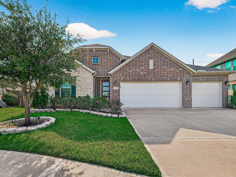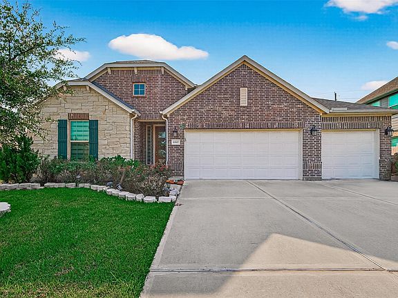 Welcome to this well-kept one-story home in the highly sought-after Grand Vista of Richmond, TX. With 2,858 sqft, it offers 4 bedrooms, 3 full baths, a game room, a study, and a huge living room. The front elevation features a combination of brick and stone. Walk past the 8-ft fiberglass front door, and a wide hallway leads to the kitchen, which overlooks the living room. The island kitchen has an 8" top-mount sink. All interior doors are upgraded to 8' high. The primary bedroom has a bay window upgrade, and its bathroom has two sinks, one on each side of the jet tub, one next to the walk-in closet, and the other next to the stand-up shower. One of the two secondary bathrooms has a double vanity. Relax on the patio; there is no back neighbor.