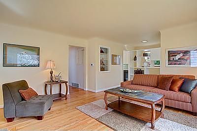 Charming light filled home with territorial,mountain views. Slate entry, refinished hardwoods throughout, frpl. Kitchen w/ all kinds of counter & cabinet space, patio doors to view deck. Remodeled baths, spacious bedrooms, fully finished daylight lower level with family room and access to patio. Rare two car garage, nicely landscaped yard. Upgrades galore new furnace, thermopane windows, and water heater. Great neighborhood walk to stores, and restaurants. Convenient bus access to downtown.
