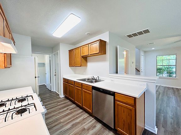 A lovely three bedroom, two and a half bath duplex, in a neighborhood that feels very secluded from traffic, but is very convenient to major roads, and is a quick drive to Southpark Meadows. The unit features vinyl plank downstairs and fresh carpet upstairs, a large fenced backyard; laundry connections; and a garage.